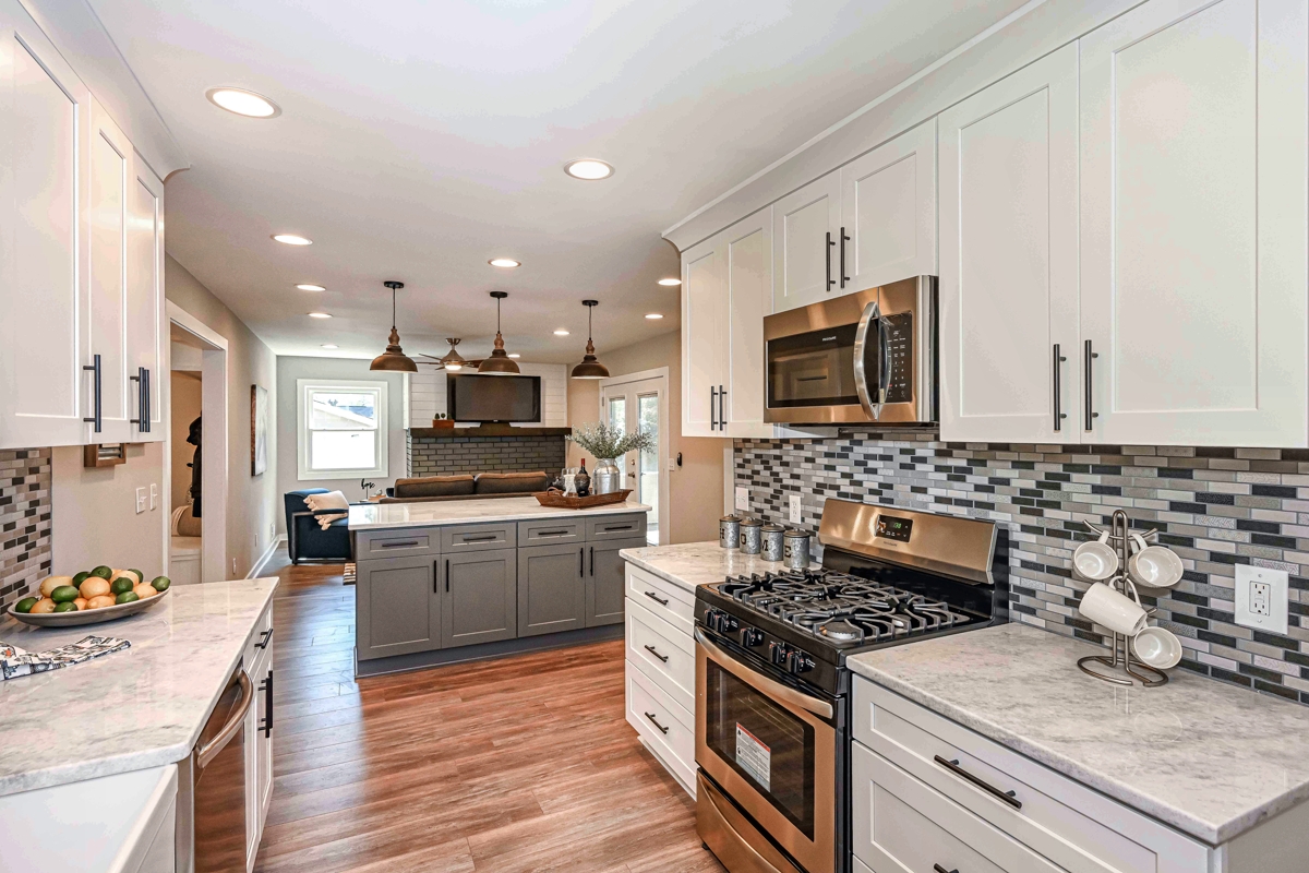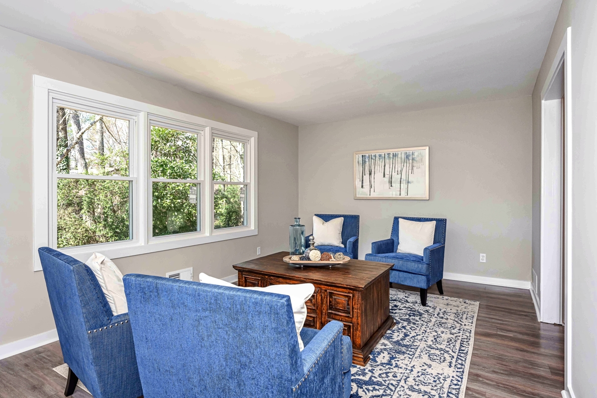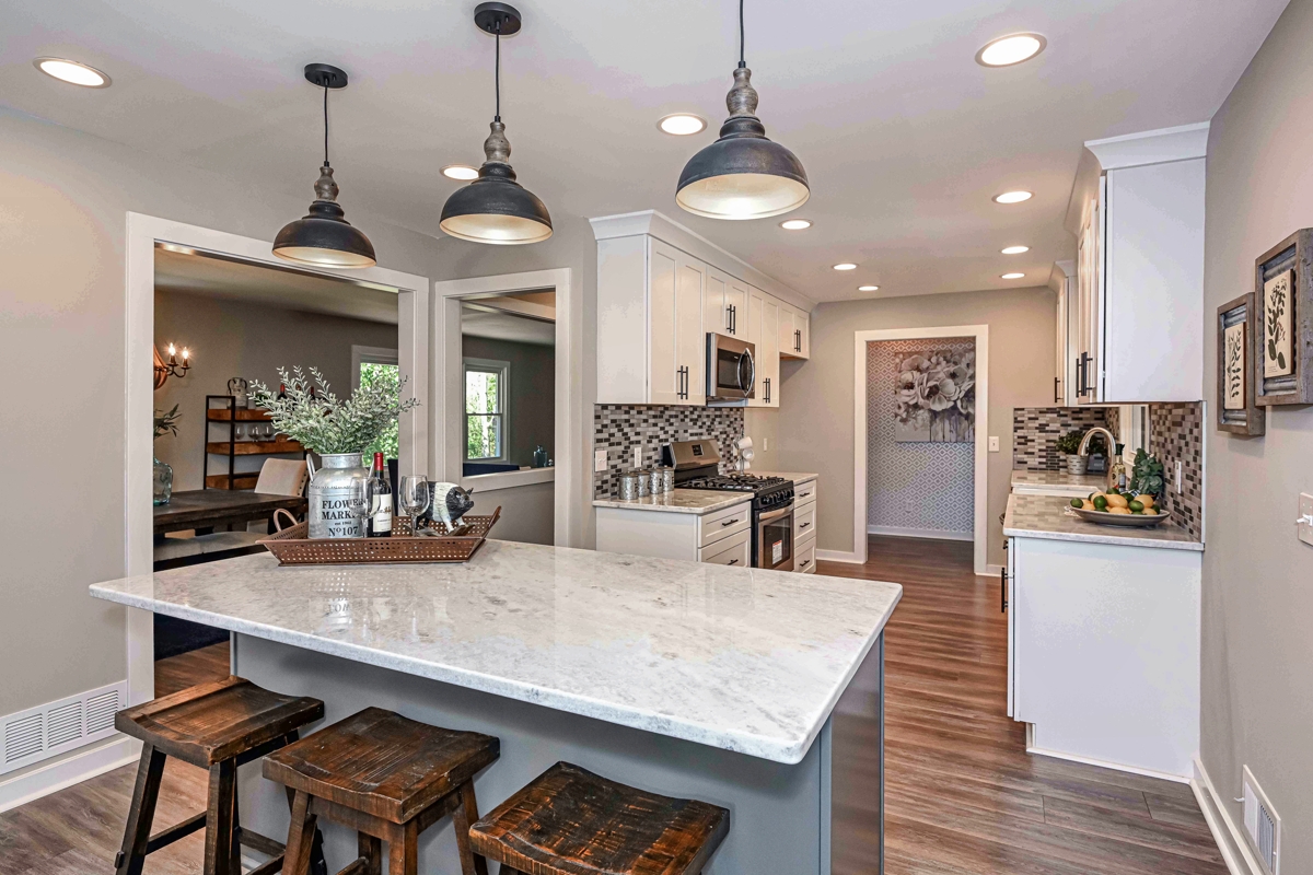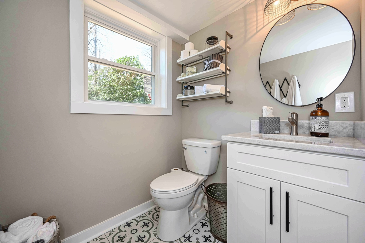 Bowport’s Windgrove Project is an East Cobb renovation and remodel that checks all the boxes: completely remodeled; convenient East Cobb location; loaded with desirable features, plenty of extra space; and it is move-in ready!  This is a custom top-to-bottom remodel, renovation, and transformation resulting in a fabulous 4-bedroom, 4-bathroom, 2-car garage ranch home with a full basement.  The flex space could be a 5th bedroom, game room, or media center.  This home contains more than 2,500 square feet of heated/cooled space, an extra 1,330 square feet of unfinished basement for storage or future needs, and a screened-in porch, all on a beautiful lot in a mature neighborhood.